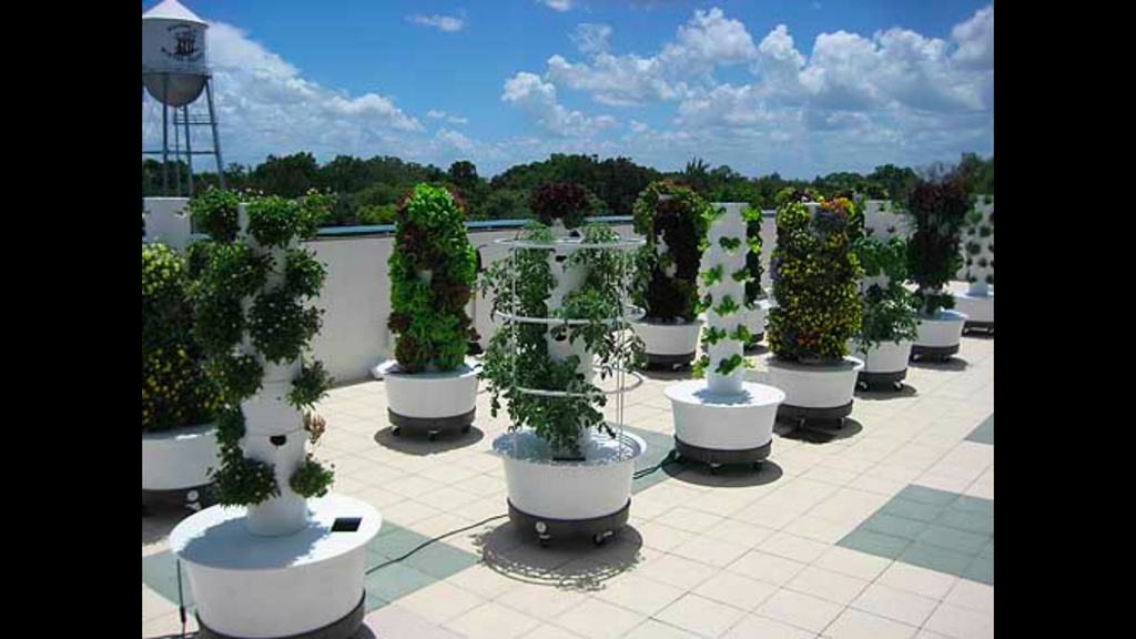 It can grow every herb, fruit and vegetable short of root vegetables. We will be starting with arugula, kale, bibb lettuce, cucumber, heirloom tomatoes, chives, cilantro, parsley, eggplant and more. Well, we hope we will. This system and others like it, including aquaponics, are the future of urban farming.