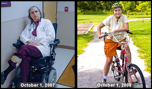 - After 5 months: she rode her bike for the first time in a decade and pedaled around the block.