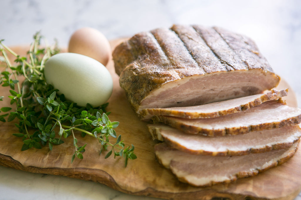 Most bacon is made from pigs that have been fed horrible diets and led really rough lives right up to harvest. At Pete’s Paleo we use only pork belly that comes from Salmon Creek Farms. A family owned company that works with Menonite ranchers to raise the pigs naturally in very relaxed environments. They’re fed good diets, no hormones or antibiotics and when we get the belly the only thing we add is smoke, salt, herbs and love. That’s it. No “hydrogenated” anything, no preservatives, just nitrates naturally found in food. So our bacon, really is good for you.