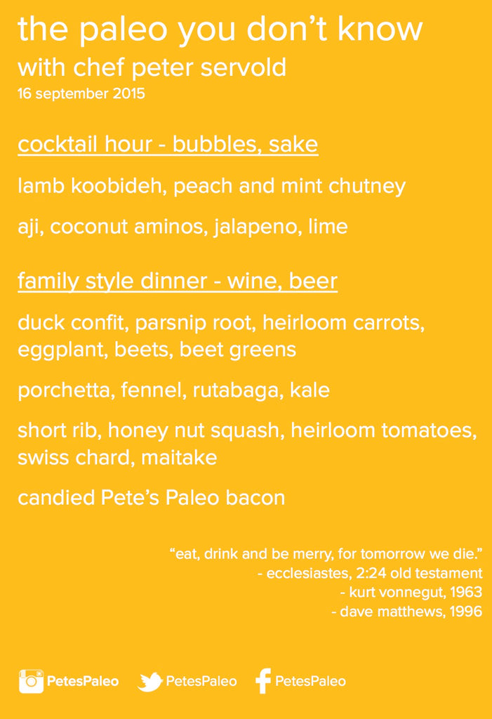 So there is only so much we can do with our little company to get the news about good food out there. This past week we traveled to NY. I put my knife bag in my checked luggage, and started planning a menu based on what we found at the Union Square farmers market on our first day there. Thanks to fortunate contacts and fortunate timing with Fashion Week, we rounded up editors from some of the top publications in the country and city for a fresh take on Paleo. For me this was a huge opportunity for myself as a chef, cooking a dinner that, for many, is one of the few that matter when it comes to cuisine. I’m proud to call San Diego home but any chef who says he doesn’t have dreams of a 12 seat place in the East Village or Tribeca is a damn liar. So to just live that for a night was beyond what I could expect. The oven burns never felt so good. Chefs are weird. Anyways, not that there would be a ton of pressure on me for my first dinner in the Big Apple or anything, but I was also serving folks from the NY Times, Fast Company, Details, Mens Journal, People Magazine, Cosmopolitan, Well + Good, Surface Magazine, First For Women, Prevention, Complex and the NY Daily News. Food went out, it was eaten and enjoyed. I cooked the best porchetta of my life. It stayed together perfect. Phew. But we also got to talk about what Paleo is and could help with. The first being local seasonal vegetables, paired with pastured, responsible protein, fruits, nuts and spices, the second being getting more and more people to eat quality food. Bottom line, I know a lot of people think not everyone can afford this way of eating so it is flawed. Well who can afford the diet of processed foods from corn, wheat, or soy? Right, so it’s about yes we can/have to do this and how? How can we use technology, aquaponics, responsible policy, better reporting, etc to bring necessary nuance and change to the situation. If nothing else it was a great conversation with people who start a lot of conversations all over the country with content for their consumers. Hopefully more of those consumers will find a better way to eat.