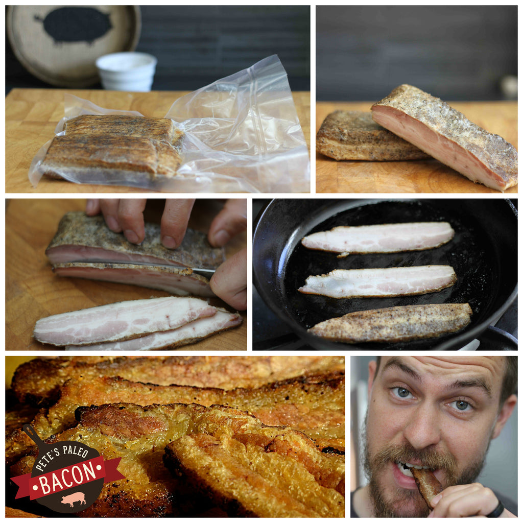 First, Pete makes bacon. Each package is a beautiful 1-lb. slab of unsliced bacon - you can slice as thick or thin as you like! It comes from pastured pigs, ethically raised by local farmers. (As an FYI, there's no such thing as "grass-fed pork," because pigs don't eat grass! When you're looking for quality pork, you want to look for pastured/pasture-raised pigs.) This bacon has no sugar or sweeteners added - and for anyone doing a strict Paleo diet, a low-sugar or sugar-free diet, a whole foods diet, a 21-Day Sugar Detox, or just generally looking to cut the junk out of your food, Pete's bacon is a fantastic option! One last thing - in the preparation of this bacon, Pete cures it instead of brining it, so that when you slice and cook this bacon, it won't shrink up on you. Anyone who's ever started out with a big ol' piece of raw bacon and ended up with a teeny piece of cooked bacon knows how annoying that is! I've said before and I'll say it again - bacon has gotten such a bad rap in modern day culture, but when you're eating bacon like Pete's bacon, you can feel good about eating it, and even call it a healthy food. When you eat meat that was raised and fed the way nature intended, and prepared in a way that minimizes processing and additives, you're eating the right kinds of foods!