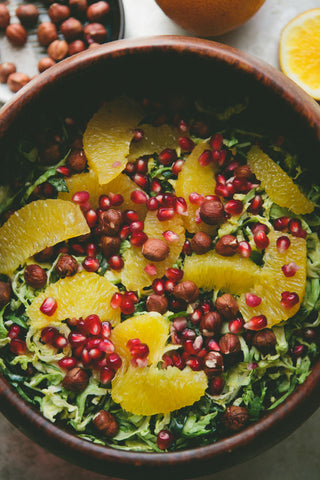Shaved Brussels Sprouts Salad: Toasted hazelnuts, pomegranate and oranges make this just about the most seasonal salad we ever did see. Although it is called a “Christmas salad” but we think it will do brilliantly for either holiday.