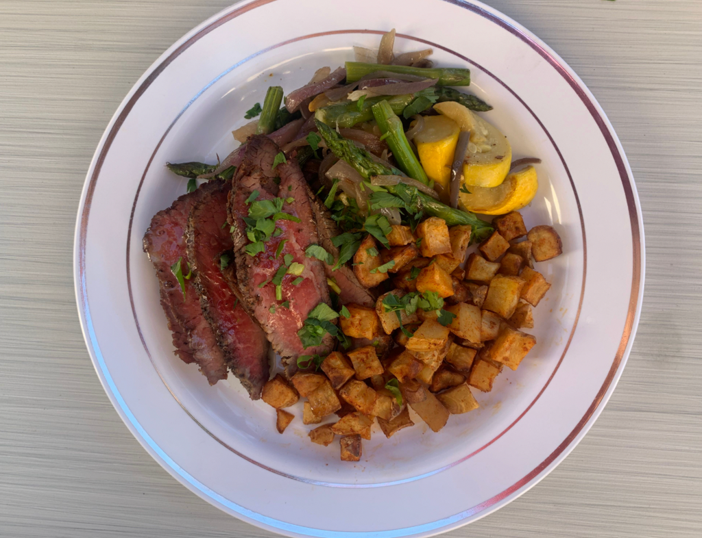 Protein and vegetables: Think steak and grilled vegetables or broiled chicken and Generally, this formula of protein and vegetables is relatively easy to find in most restaurants these days.