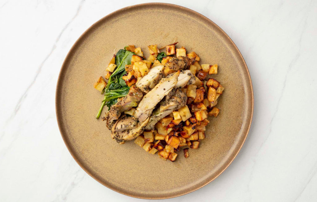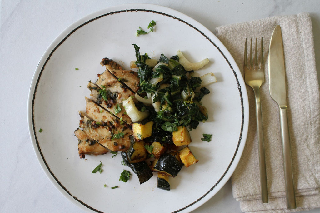 Our Menu Pick: Basil Ginger Chicken with Sautéed Bok Choy and Roasted Acorn Squash