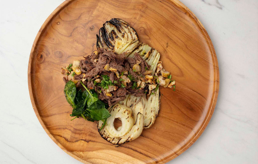 Our Menu Pick: Balsamic Braised Beef with Celery Root Puree and Spinach with Chestnuts