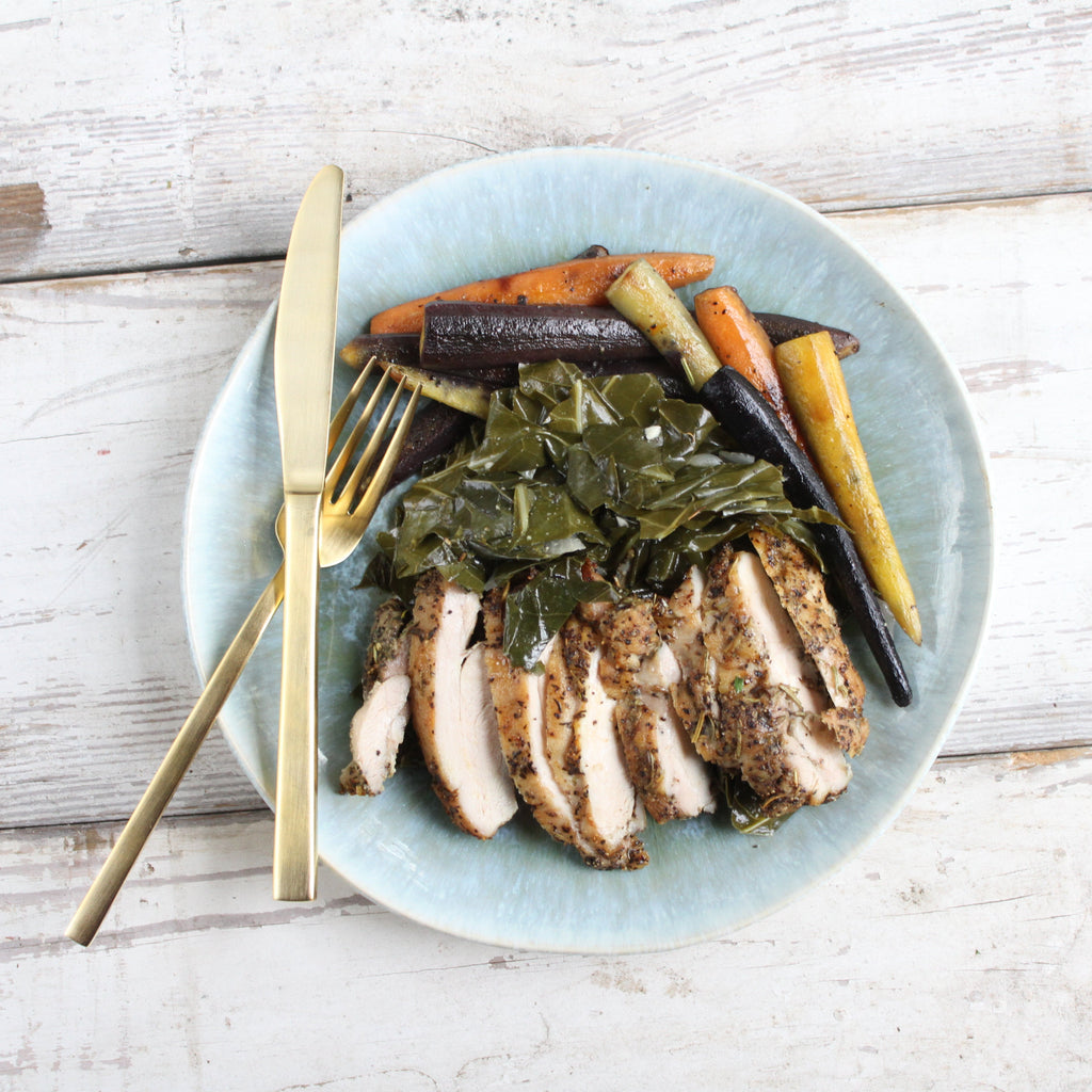 Herbed Chicken with Collards and Roasted Rainbow Carrots