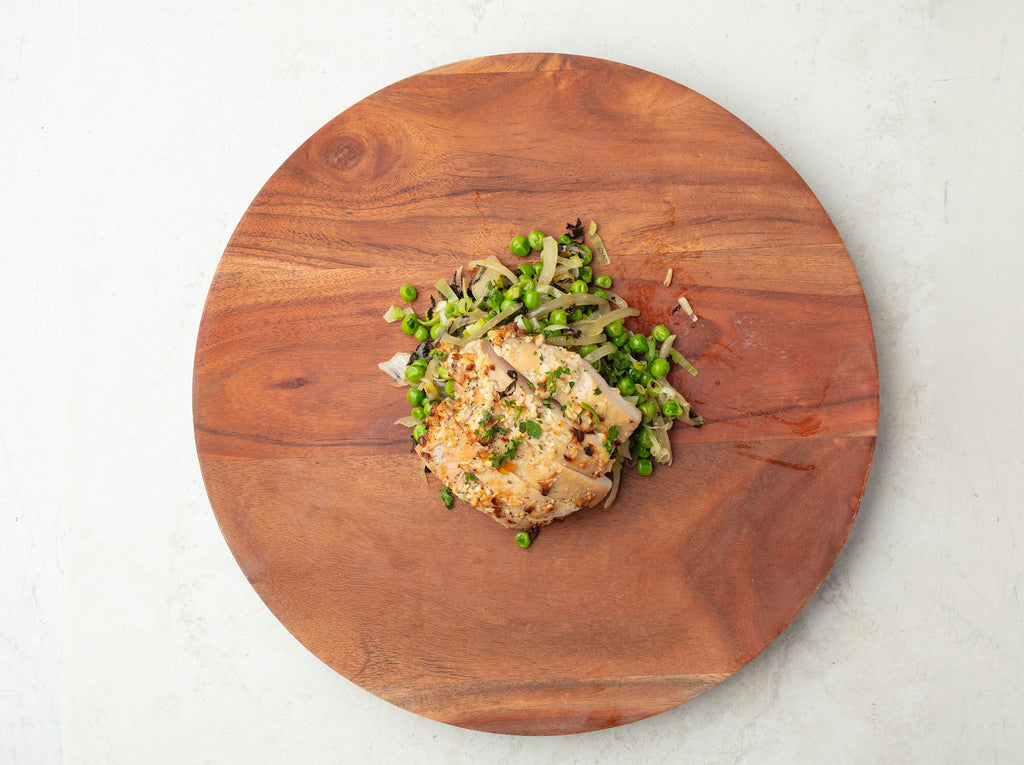 Roasted Garlic-Parsley Chicken with Leeks, Peas & Mint