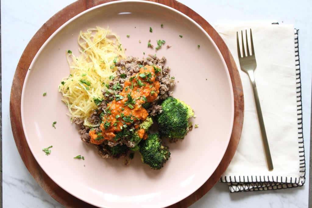 Roasted Red Pepper Marinara Beef with Broccoli & Spaghetti Squash