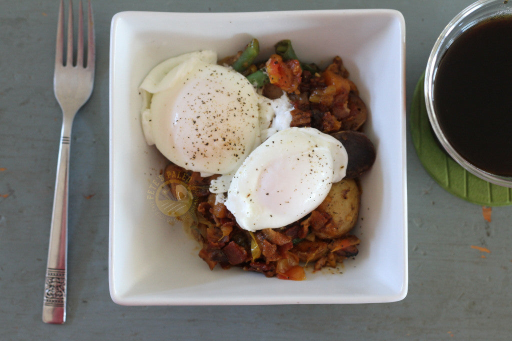 New Potato and Green Bean Hash w/ Poached Eggs for Breakfast