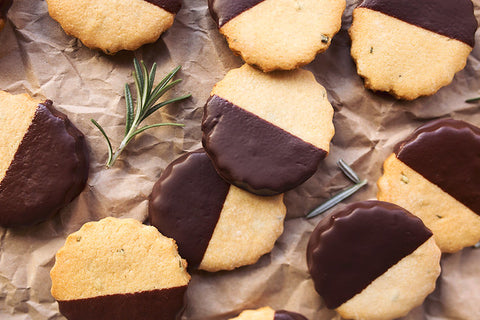 Chocolate Dipped Rosemary Shortbread Cookies