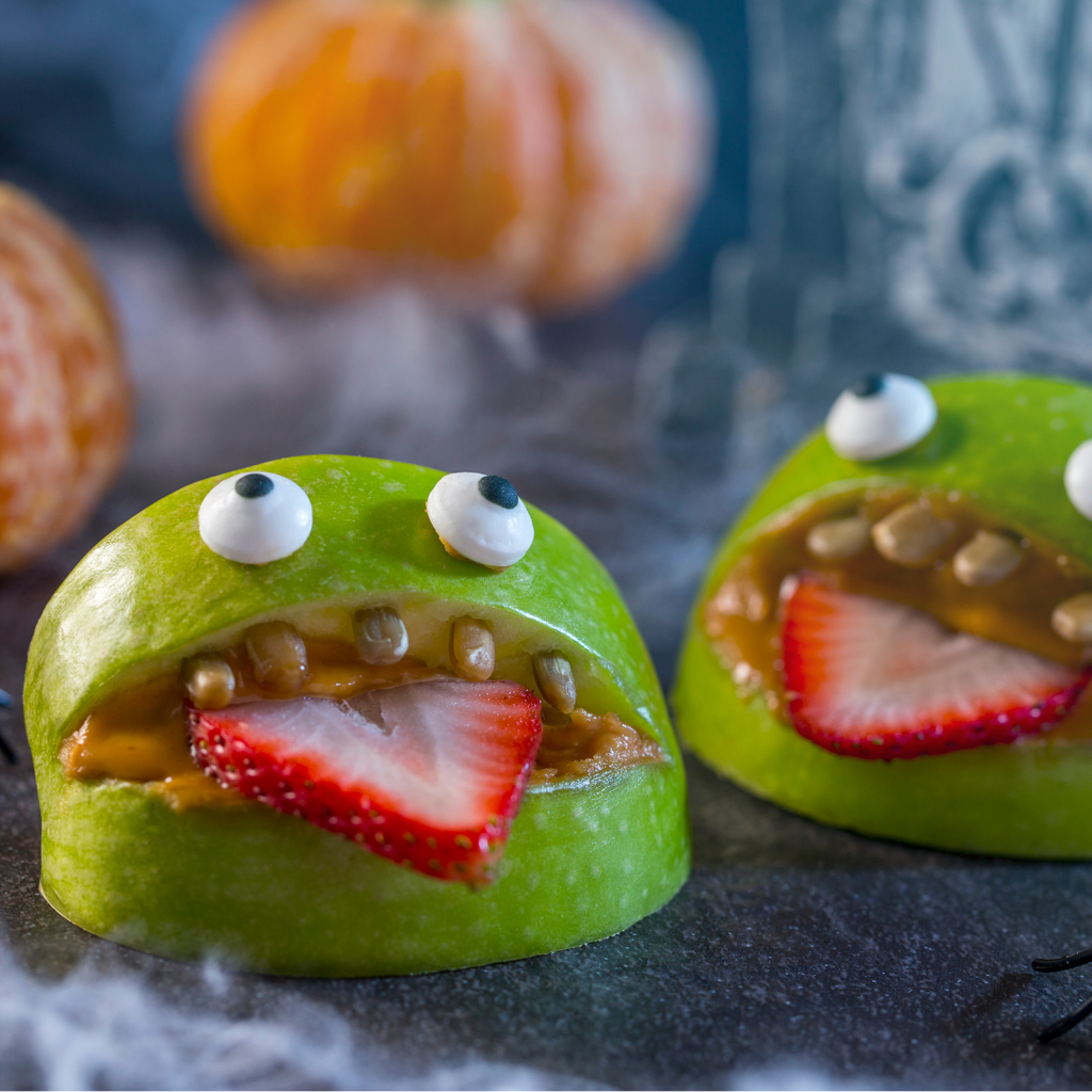 Fruit Monsters: Create spooky fruit monsters by adding eyes and funny faces to fruits like clementines, apples, or bananas. This is a creative way to provide a healthy treat. You can make banana ghosts by freezing banana halves and dipping them in some lightly sweetened cacao butter. Add raisins for eyes and a small piece of dark chocolate for the mouth.