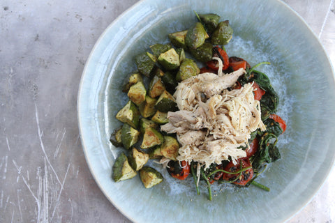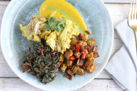 For our new summer menu, we dice the squash and season it with salt, pepper, garlic, and cumin and give it a fast roast at a high temperature. This will pare very well with our Coconut Curry Chicken Thighs and Sautéed Garlic Chard. Enjoy!