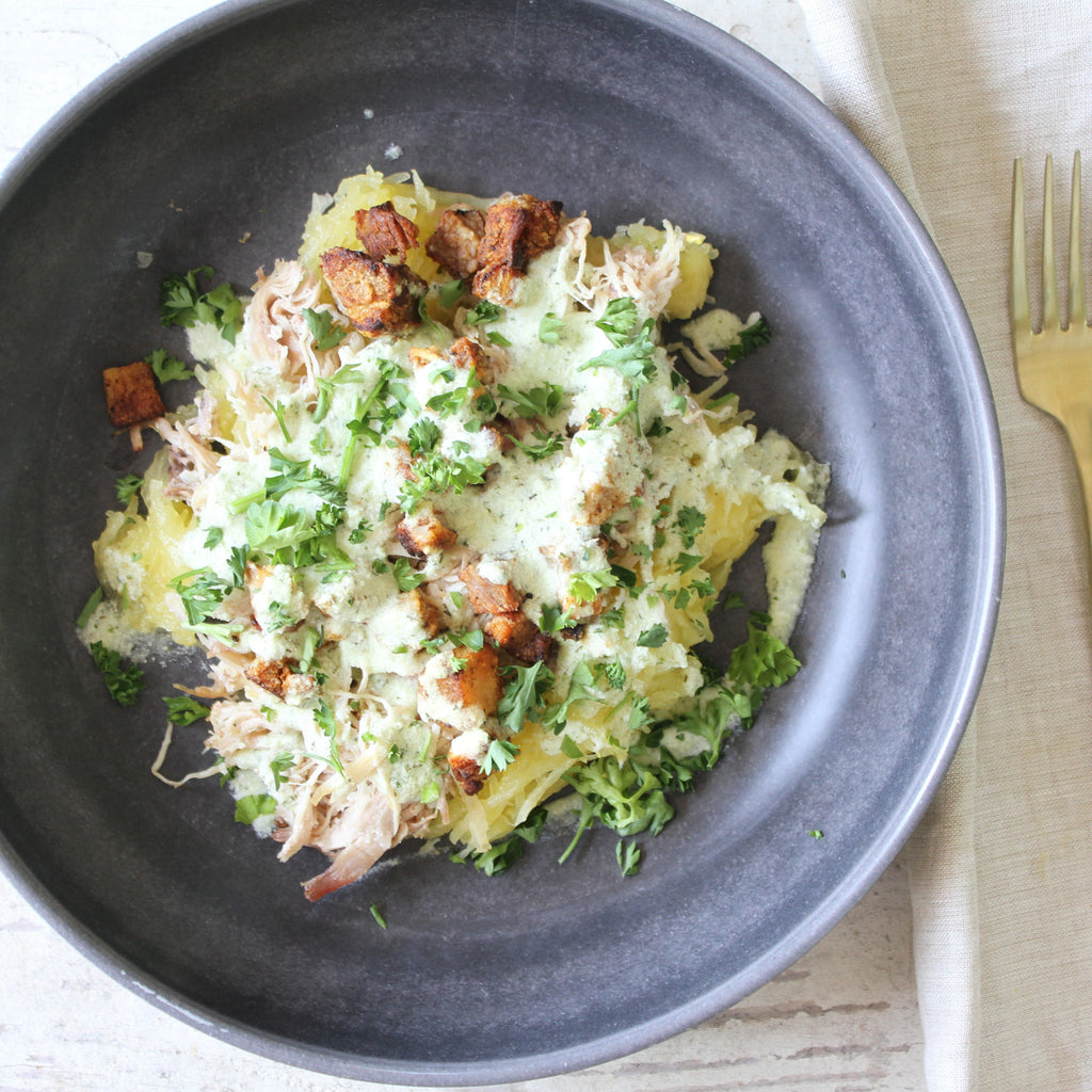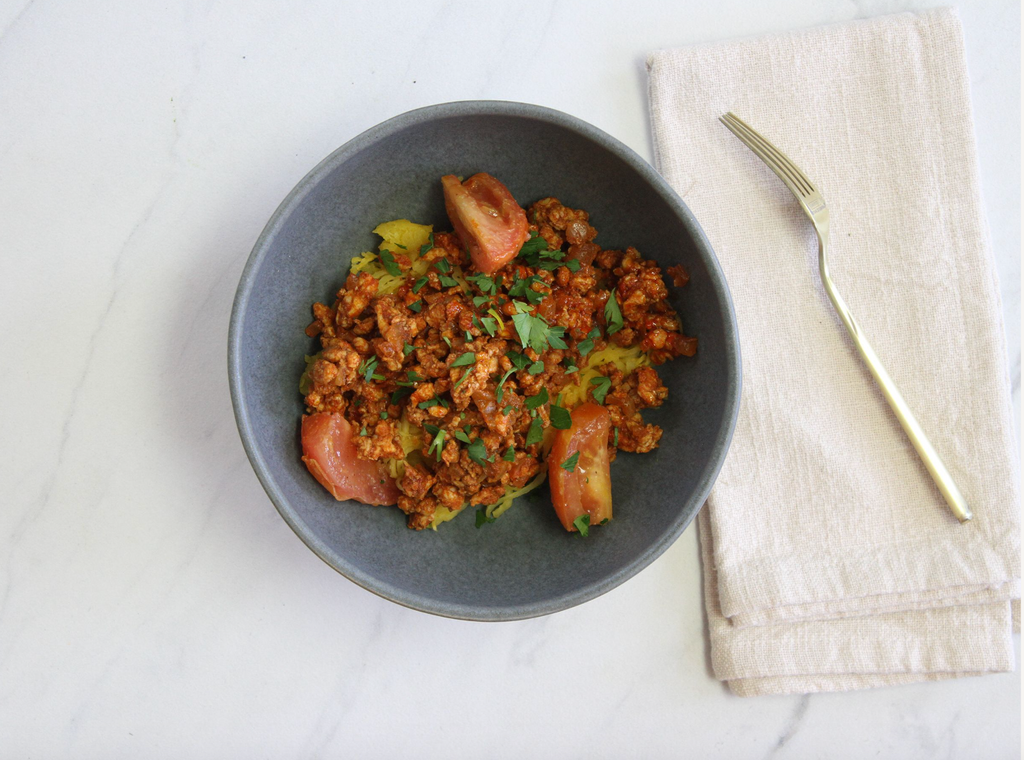 Chicken Chili with Oven-Roasted Tomatoes and Spaghetti Squash