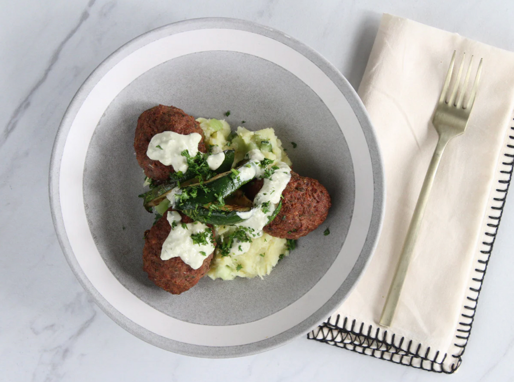 Gyro Kebabs with Grilled Zucchini and Cucumber Garlic Parsnip Mash