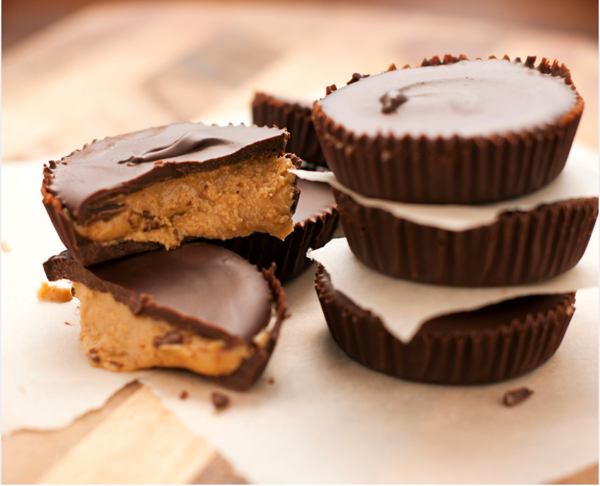 Melt dark chocolate and layer into mini muffin liners. Add a dollop of almond butter mixed with a touch of honey, then top with more chocolate. Chill until set.